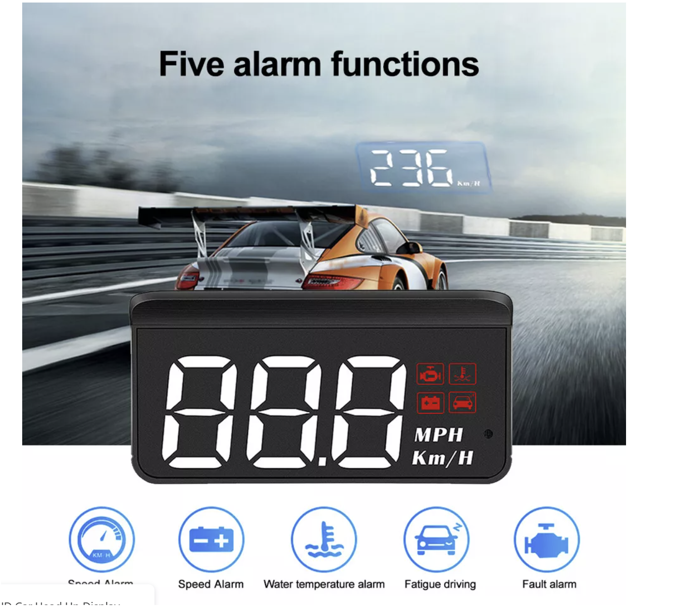 Multi-function: Heads up display can display vehicle speed, water temperature, voltage, one-way mileage. With alarm function, overspeed alarm, water temperature alarm, voltage alarm, fatigue driving reminder, fault alarm. HUD has an adaptive light sensor function, with clear backlight during the day and soft and glare- at night.